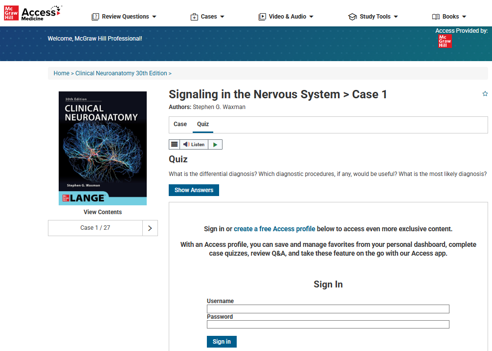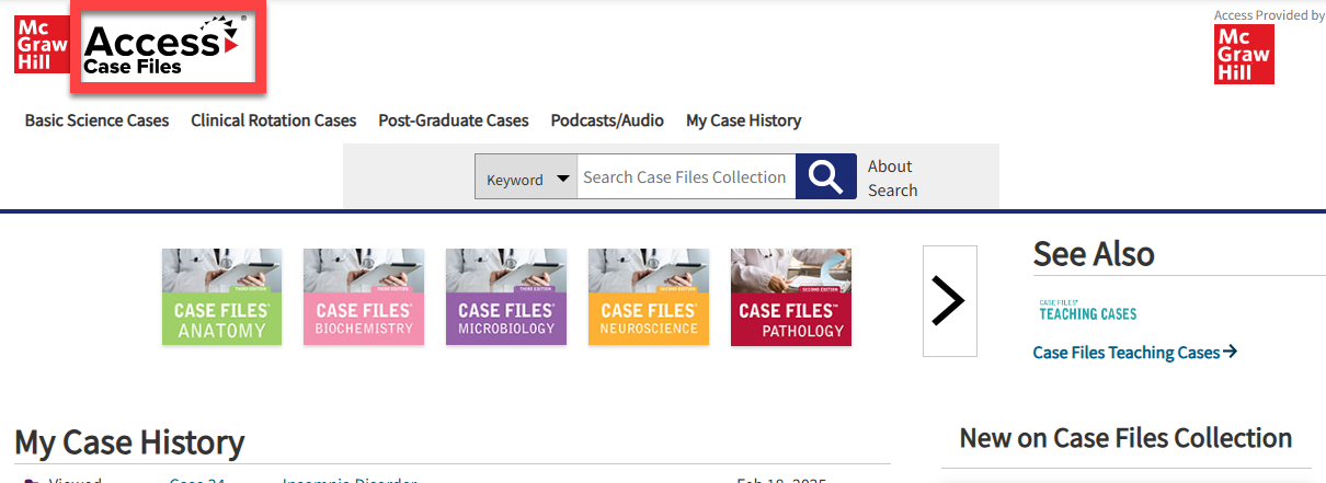 Using cases through the Access sites or through Case Files Collection requires users to be logged in to their personalized profiles (Access Profile). It’s free and it allow users to track their progress while reviewing cases and taking associated questions. It will also allow them access to the new Access mobile app, bookmark, and access other features.