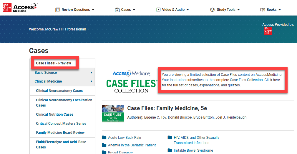 The Case Files® - Preview allows you to view a limited selection of cases on the Access site.